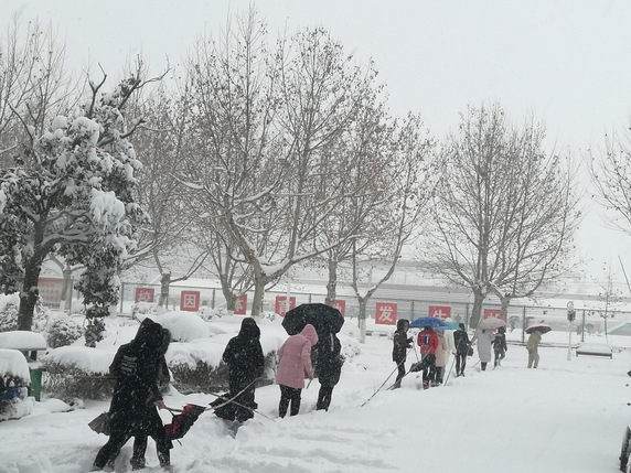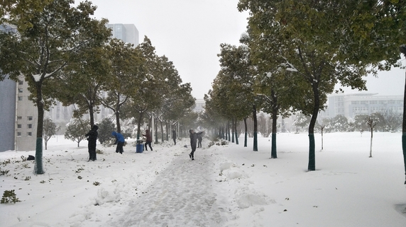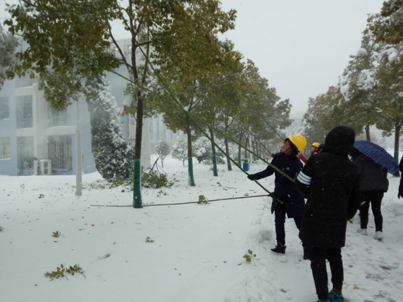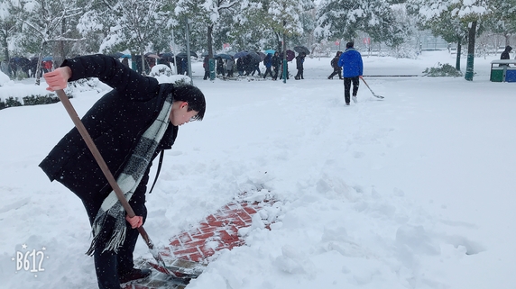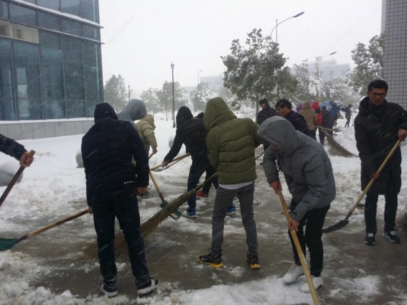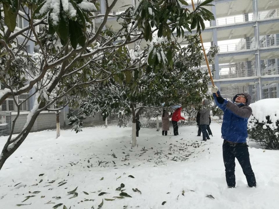 从昨天开始,蚌埠遭遇入冬以来最强降雪,校园路面出现大量积雪,给师生出行带来极大不便,同时道路两侧树木在大雪的持续压力下,树枝随时有坠断可能,存在较大安全隐患。4日上午,学校召开紧急会议,研究部署暴雪恶劣天气应对方案,并迅速组织相关单位、部门实施。与此同时,我校师生纷纷自发冒着风雪,清除路面和树上的积雪,为大家的安全保驾护航,在这个暴雪肆虐的寒冬,他们让校园里充满着春天般的温暖。