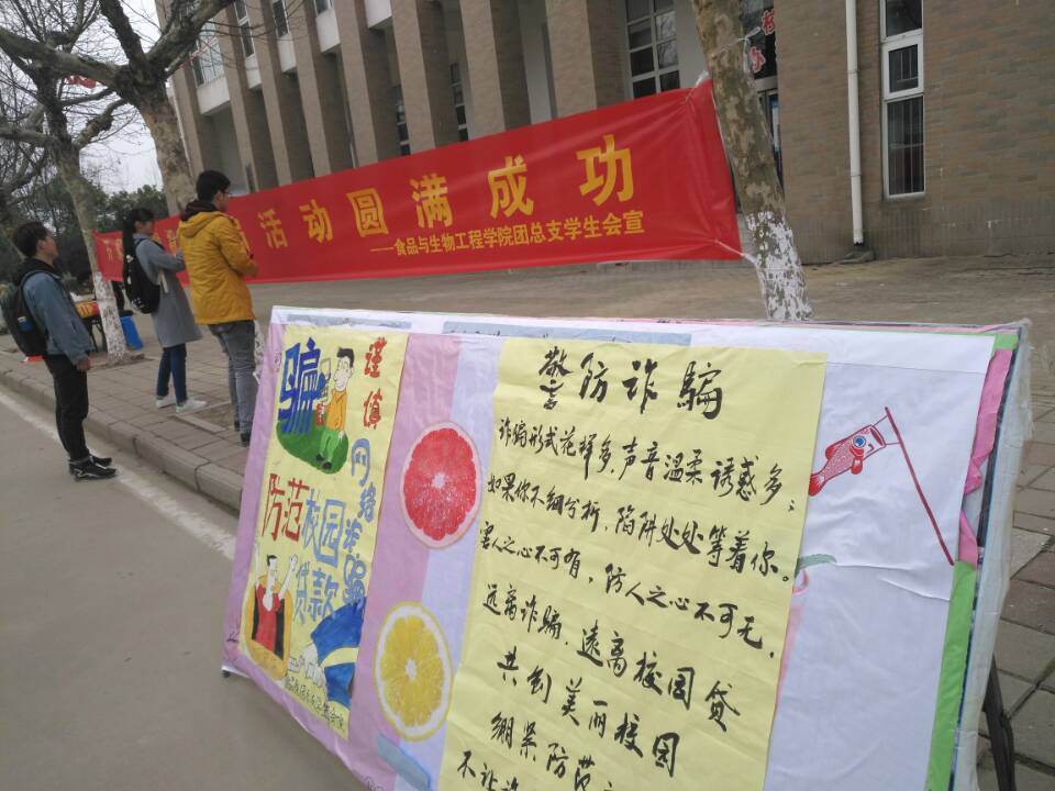 本次活动中,蚌埠市交通银行的讲师向到场的学生们全方位宣讲了防范诈骗的知识并重点就“校园贷”问题向学生们进行了风险警示。同时将在校主干道进行展台宣传和横幅的签字宣誓。通过横幅与宣传板对诈骗活动进行宣传,向学生讲解校园学生发生的诈骗案件典型案例,指导学生们在今后的生活学习工作中如何识别和防范就业诈骗、电信诈骗、网络诈骗等金融诈骗伎俩。