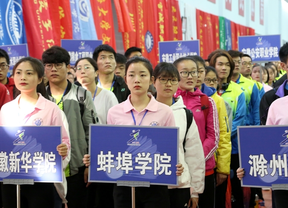 安徽省体育局副局长王大军、蚌埠市政府副市长张晓静等出席开赛仪式,来自全省64所高校的700余位运动员、教练员、领队、裁判员参加开赛仪式。仪式由蚌埠学院副校长郭宛京主持。