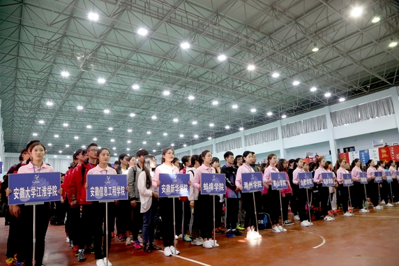 3月28日上午,我校体育馆里,两排青春洋溢的引导员背后,一队队身着整齐比赛服的运动员们跃跃欲试、摩拳擦掌,他们期待已久的安徽省第十四届运动会高校部羽毛球赛在这里如期拉开战幕。