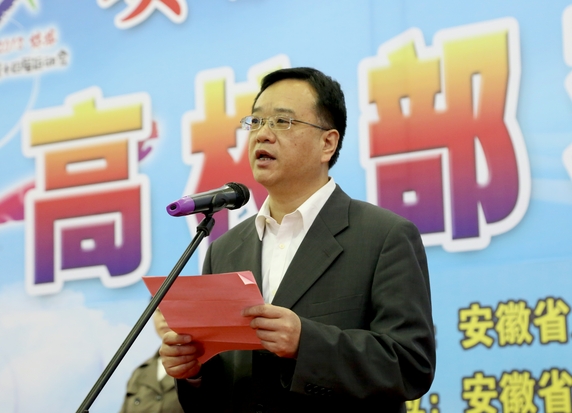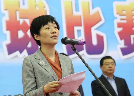 蚌埠市政府副市长张晓静讲话。她指出,安徽省第十四届运动会高校部羽毛球比赛即将拉开省运会的序幕,安徽省运动会是我省规格最高、规模最大、竞技水平最高、辐射带动性强的综合性运动会,承办安徽省第十四届运动会对于推动我省体育事业、体育产业全面发展,提升蚌埠淮河流域和皖北地区中心城市服务能力具有重要意义。我们将以习近平新时代中国特色社会主义思想为指导,深入贯彻党的十九大精神,大力弘扬奥运精神,践行人文省运、科技省运、绿色省运、温馨省运理念,围绕运动场馆设施,一流的组织服务,一流的竞赛成绩、一流的城市形象要求,主动作为,科学筹划,精益求精,举全市之力,办一届高水平、回归本源,有持久影响力的体育盛会,办一届展示蚌埠深厚文化、优美山水、和谐生态、现代化城市形象的体育盛会,办一届为建设两个中心、凝心聚气、同心同向、跨越赶超的体育盛会,全面推动蚌埠经济社会又好又快发展。