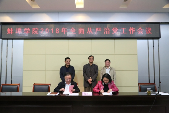 会上,党委书记刘泽功、校长丁明与各单位、各部门签订了《蚌埠学院2018年党风廉政建设责任书》和《蚌埠学院2018年安全稳定工作目标责任书》。(撰稿:张敏;编审:黄灿 袁飞)