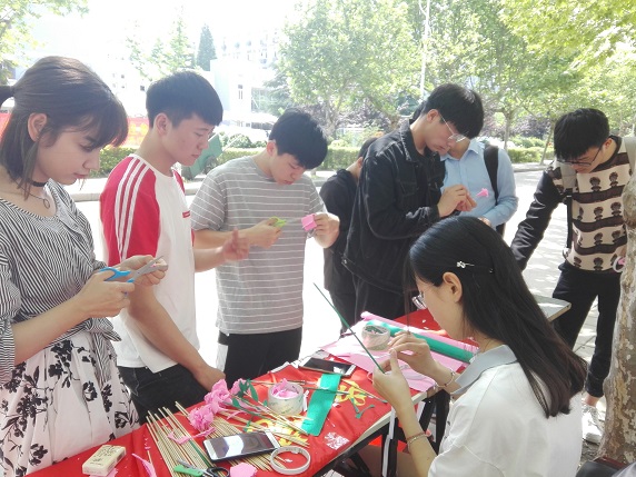 “浓情五月天,感恩母亲节”,在今年的母亲节到来之际,为了表达对母亲的感恩之情,也为母亲送上一份真挚的祝福,5月13日,由电子与电气工程学院青协主办,手工协会协办的“送给妈妈一束花”的感恩活动顺利开展,活动中,同学们在心灵手巧的手工协会社员的指导下,亲手为妈妈制作纸折花。在同学们的巧手下,花朵、花托、枝叶慢慢成形,一朵朵怒放的玫瑰花,鲜艳生动,每一朵花都充满浓浓爱意。