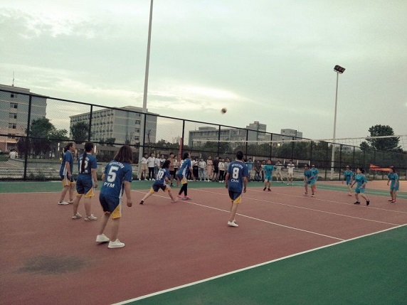 女排决赛打得更加精彩激烈。材化学院女排开局顺利,连续取得两场胜利,然后局势逆转,文教学院队后发制人,比分被追成2:2平。在第五场决胜局,比赛进入了白热化阶段,赛场上观众的助威呐喊和喝彩的声音此起彼伏。最终,材化学院女排队员们奋力拼搏,每分必争,在不断地角逐中逐渐超过文教学院队,取得了第五场得胜利,以3:2得分夺得女子排球赛冠军。