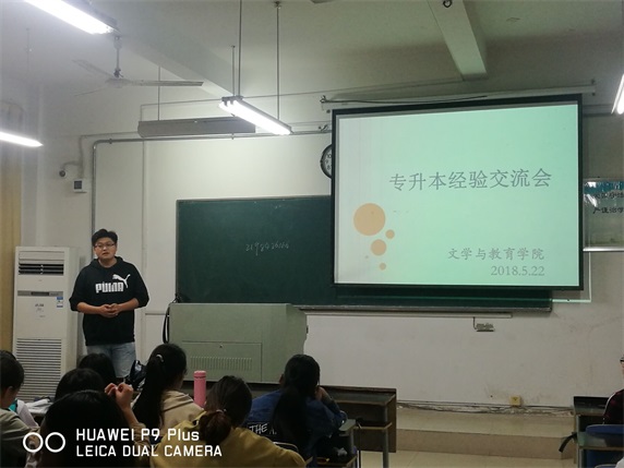 为贯彻落实学院关于2019届毕业生就业工作的总体安排,提高2019届专科毕业生对专升本考试的认识,早作准备。2018年5月22日傍晚,文学与教育学院在b209教室举办了专升本考试经验交流会。文教学院16级学前教育专科班全体同学,15级学前教育专科班考上专升本的学生代表,辅导员潘兰香和班主任刘鑫参加了会议。