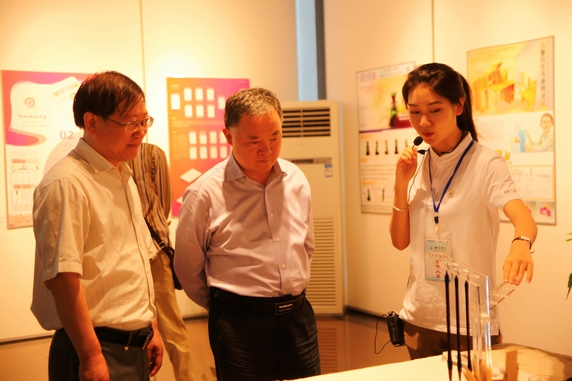 富有创意设计的展厅中各类作品琳琅满目,令人目不暇接。本次展览共设置了环境设计、数字媒体艺术、视觉传达设计、艺术与科技、产品设计及工业设计六个展区,集合了艺术设计学院、机械与车辆工程学院(工业设计专业)近200件作品参展,相比往届,本届展览不仅参展的作品数量多,种类丰富,设计水平、制作质量也有了很大提升,不少作品的创意设计围绕地方经济文化发展,借助传统或现代媒体技术手段进行展示,令人耳目一新,一些创意产品构思巧妙、制作精美、生动有趣,受到观展师生的喜爱和好评,部分作品还接受了企业、个人的定制。