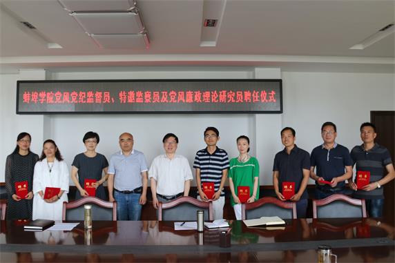 为进一步拓宽我校民主监督渠道,健全党内监督与党外监督、专门监督与群众监督相结合的监督机制,加强党风廉政建设理论研究,进一步推进学校全面从严治党工作,6月1日下午,蚌埠学院举办新一届党风党纪监督员、特邀监察员及党风廉政理论研究员聘任仪式。校纪委书记赵大为出席了仪式并讲话,聘任仪式由纪委副书记王庆山主持。