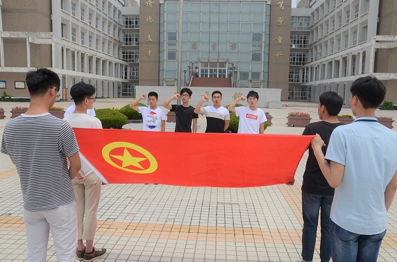 电子与电气工程学院团总支于6月4日中午12点半在图书馆门前的国旗下举行了入团宣誓仪式。仪式开始,主持人公布了本学期新加入团组织的九名同学名单,并由老团员代表给新团员代表佩戴上象征着光荣与责任的团徽。