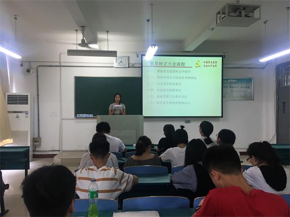 为加强学生党员队伍建设,吸收新鲜血液,文学与教育学院学生第三党支部于6月11日在B321开展预备党员转正大会,讨论审议俞晴、王臻、罗媛媛、宋梦圆、陈悦、梁有凤6位预备党员按期转为中共正式党员的事宜。会议由支部书记黄宇琛主持,支部成员参加会议。