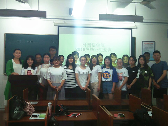 2018年6月19日下午,外国语学院在教学楼A202教室开展以“明规矩、守纪律、强担当”为主题的2018届毕业生党课教育活动。活动由外国语学院学生支部书记吴婷婷主持,学生支部全体党员参加。