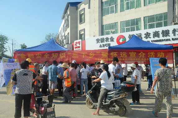 7月13日,安徽蚌埠学院理学院暑期社会实践“三下乡”志愿者队伍来到了安徽省蚌埠市怀远县古城镇,进行了形式多样的金融安全知识公益宣传活动。据悉,本次活动由招联金融主办,中国青年网协办、蚌埠学院校团委和理学院承办。