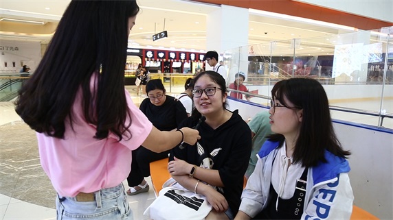 7月4日下午3点“我与省运会”调研小组于蚌埠学院北门集合,乘坐128路公交车到银泰城。蚌埠市银泰城位于延安路与东海大道交叉口,地理位置优越,是问卷调查的不二之选。小队分为两组,一组发放填写问卷,另一组街拍采访。
