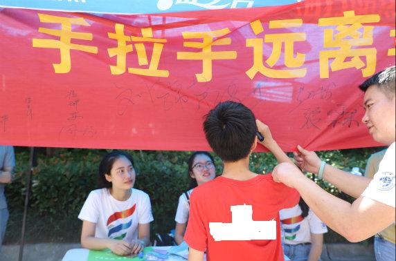 7月13日上午,我校大学生志愿者齐聚绿地国际花都社区开展禁毒防艾宣传活动,他们身着禁毒防艾文化衫的志愿者在人流集中场所激情地演唱着《飘动的红丝带》,同时通过有奖问答,发放各类宣传材料和调查问卷、面对面讲解、联合社区街道推送宣传文章等方式,向居民宣传艾滋病防范、毒品与疾病健康相关知识,引导居民们重视毒品和艾滋病的危害性,提高了群众的健康安全意识和防范能力。活动中,大学生们志愿者细致地讲解着宣传页的主要内容,教会群众关注禁毒微信公众号,并耐心解答群众对什么是毒品、毒品有哪些危害、如何抵制毒品等多方面的疑问,引导广大群众树立“珍爱生命、远离毒品”的意识。此次活动的受众人群十分广泛:有城市街区来往的居民、道路两旁的商户、流动人员、中小学生,也有城乡结合部的新型农民,他们不仅耐心地听取大学生们的禁毒宣传,而且都主动地拿起签字笔庄重地在禁毒防艾宣传横幅上签下了自己的姓名。“今天我知道了什么是毒品,更重要的是宣传员阿姨告诉了我毒品的巨大危害。”小学三年级学生张子墨告诉现场宣传员,回到学校以后,将把毒品的危害告诉班里的同学,让大家一起宣传禁毒知识。