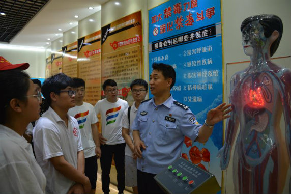7月12日上午,在市禁毒办的组织下,我校大学生志愿者来到了蚌埠市疾控中心,认真聆听了艾防科专家的讲座。当日下午,大学生志愿者又来到了蚌埠强制隔离戒毒所进行参观学习,并开展座谈交流。大学生志愿者在该所治疗康复中心亲身体验磁场刺激测试仪,参观劳动康复中心、体能训练中心、教育疏导中心、生活起居中心等。