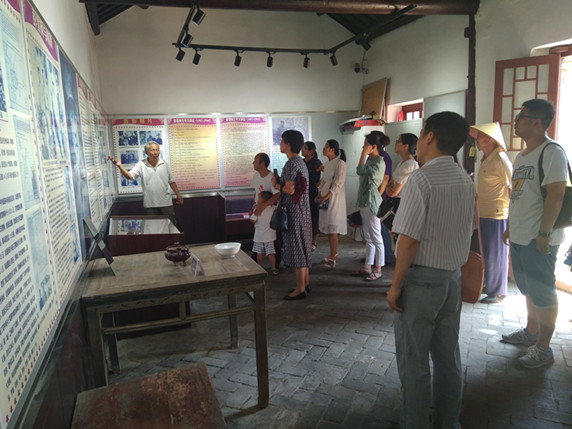 怀远县龙亢镇是全国仅有的19个红色抗日根据地之一,是新四军四师办事处所在地。大家在老馆长的带领下依次参观了各个展室,认真聆听了彭雪枫将军领导蚌埠淮上地区新四军三进淮上抗日的历史、彭雪枫将军的生平事迹、在淮上牺牲的革命烈士的英勇事迹等。新四军用过的珍贵革命文物和一张张历史图片,深深震撼着每一位在场党员的心灵。英勇的淮上儿女不屈不挠抗击日寇,不怕牺牲、前仆后继的抗战精神,深深激励着每一个人。使大家受到了一次深刻的爱国主义和民族主义教育的洗礼。