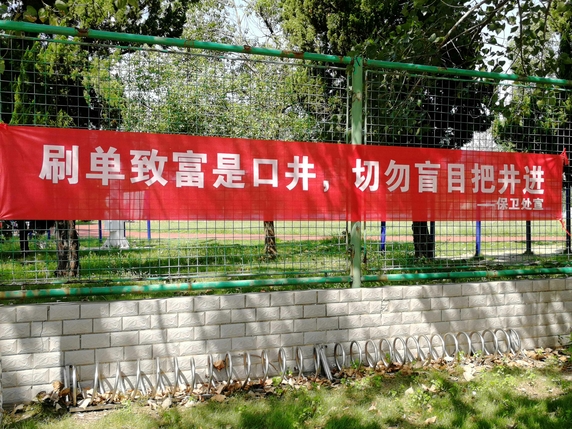 针对新学期个别学生安全意识松懈,易发安全问题等特点,保卫处在校园悬挂安全宣传横幅6条,营造安全宣传氛围。在教学楼B楼大厅设置宣传点,摆放防盗窃、防诈骗、防传销、防邪教等宣传展板6块,组织保安员、治保会学生发放宣传单2000余份,积极宣讲校园安全防范知识,提高广大同学安全防范能力,树立自觉维护校园安全的责任意识。