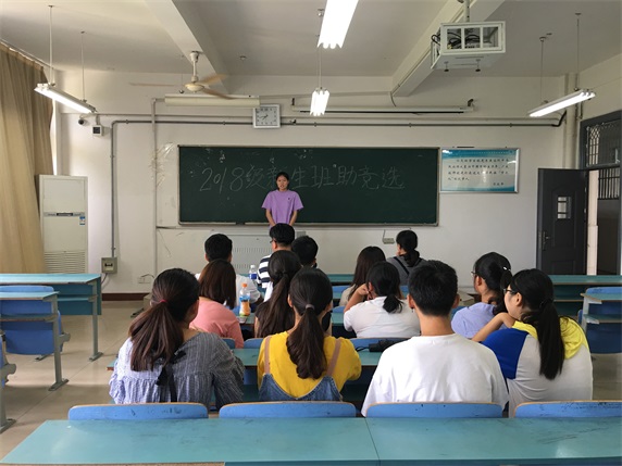 为帮助2018级新生能够较快的熟悉校园环境,适应大学生活,文学与教育学院于2018年9月5日在教室B424开展2018级新生班助竞选会。文学与教育学院党总支秘书蒋晟、2017级辅导员刘鑫、2018级辅导员黄宇琛担任竞选会评委,以期选出得力班助。