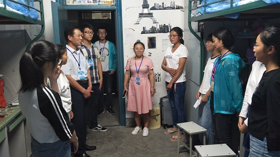 9月8日晚6时,曾卫国与新生辅导员钮辰晨逐一探访18级新生,在每一间宿舍中与刚入校的新生进行亲切交谈,全面了解新生刚进校的适应情况和对未来的规划,鼓励广大新生要主动适应大学生活,努力让自己的大学生活倍加精彩、人生更加出彩。(撰稿:李锐;编审:黄灿 任茂生)