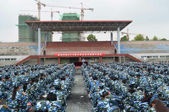 9月14日上午,学校举行2018级新生反传销警示教育活动,全体新生整齐坐在学校第一运动场上,发扬军训优良作风,克服天气炎热等因素,认真听取蚌埠市工商质监局经济检查执法局局长苏畅带来的反传销知识讲座。