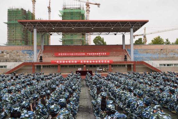 为增强大学生“崇尚科学,反对邪教”安全意识,提高抵御邪教的能力,9月17日下午,我校联合蚌埠市政法委防邪办在运动场开展“我的团长我的团”反邪教宣讲活动,市防范办副主任王善国为2018级全体新生进行反邪教、严禁校园传教警示教育。