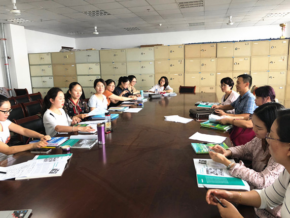 9月14日上午9点,教研室将教师分为两组:一年级组和二年级组进行集体备课。二年级组主要是就开学两周的授课情况进行反馈和反思,讨论下阶段授课重点和难点;一年级组则继续第一次教研活动的讨论。此次研讨,中心更加明确,所有教师都拿出了自己撰写的教案,轮流发言,结合教案提出自己认为合适的授课思路和课堂教学设计。现场非常热烈,每位老师都不仅是发言者,也是提问者;是举证者,也是质疑者。讨论之后,教师们按单元划分两人一组,继续商讨课件的修改细节。