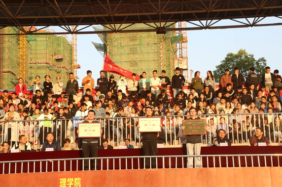 运动会裁判长纪红宣布比赛成绩,获得学生组团体总分前六名的分别是材料与化学工程学院,经济与管理学院,食品与生物工程学院,电子与电气工程学院,机械与车辆工程学院,理学院。获得学生组年级前三名的是材料与化学工程学院二年级,材料与化学工程学院三年级,经济与管理学院三年级。获得教工组团体前三名的是经济与管理学院分会,机械与车辆工程学院分会,机关二分会。获得体育道德风尚奖的学院分别是电子与电气工程学院,食品与生物工程学院,文学与教育学院,音乐与舞蹈学院。获得优秀组织奖的是材料与化学工程学院,理学院,经济与管理学院,艺术设计学院。在全体师生的欢呼声与鼓掌声中,学校领导为获奖单位一一颁奖。
