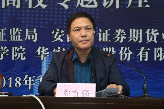 郭有强首先代表学校致辞,他向来宾介绍了蚌埠学院的基本情况、强调了对大学生进行投资理念教育、风险辨识警示的紧迫性和必要性。汪晓冰代表行业主管部门致辞,他希望在校大学生在掌握专业知识的基础上,增强防非识别能力和防范意识,自觉抵制非法证券活动及校园贷。张建群介绍了华安证券的发展历程、主要业务和此次活动的意义。