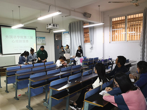 外国语学院心理辅导站于11月1日16点30在A217举办大学生校园心理情景剧大赛预选赛,推选优秀剧目参加学校决赛。副院长赵生学,辅导员杨小云、吴婷婷和张福苓老师现场参与评选,从剧情设计、表演形式等方面作了点评并提出了具体的修改建议。