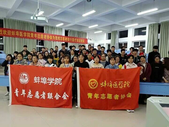 2018年11月9日,蚌埠学院教学楼阶梯教室二内的医疗急救知识培训会如期举行,蚌埠学院青年志愿者联合会全体成员及蚌埠学院各二级学院青协的志愿者代表参与此次培训会,蚌埠医学院青协培训部的志愿者为到场同学进行医疗知识培训。本次培训活动共分4个环节,分别是:心肺复苏操作(CPR)、跌伤应急处理、绷带使用方法、食物中毒应急处理。各环节依次进行,环节间穿插互动,蚌埠医学院青协培训部的志愿者通过PPT放映及现场演示给在场志愿者留下了深刻印象。在心肺复苏相关操作学习时,蚌埠学院志愿者们积极参与现场模拟操作,并进行了有趣的小比赛,现场氛围十分活跃。此外,在绷带使用方法的讲解过程中,蚌埠医学院培训志愿者详细介绍了不同部位受伤缠绷带的方法并由另一名志愿者进行了各方法操作演示,为到场志愿者提供了多种方法来应对意外受伤情况。活动中,志愿者们踊跃发言交流所得,充分发扬了志愿者互助友爱的志愿者精神。晚上九时,蚌埠学院青年志愿者联合会与蚌埠医学院青年志愿者协会全体成员合影留念后,本次培训活动圆满结束。