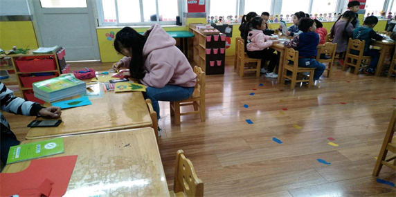 实习过程中,同学们被安排到固定班级,从早上八点入园开始,参与一天的正常教学活动。分别有晨检、早操、游戏、教具制作、课堂观摩、直到下午四点半幼儿离园。实习期间,实习生们与幼儿教师进行了细致的交流和学习,同时和保育老师学习了基本的幼儿保育常识。在游戏观摩过程中,同学们用相机记录并学习教师的指导策略,游戏材料的投放,空间布局等,尤其是环境创设。在每天的教学活动观摩研讨中,大家不断进行思维碰撞,大大提高了对所学幼儿园课程的理解与认识。通过见习,同学们了解了幼儿园的一日生活常规,熟悉了幼儿园工作特点,并在学习过程中把在课堂上学到的基本理论、专业知识和技能运用到幼儿教育和教育实践中。