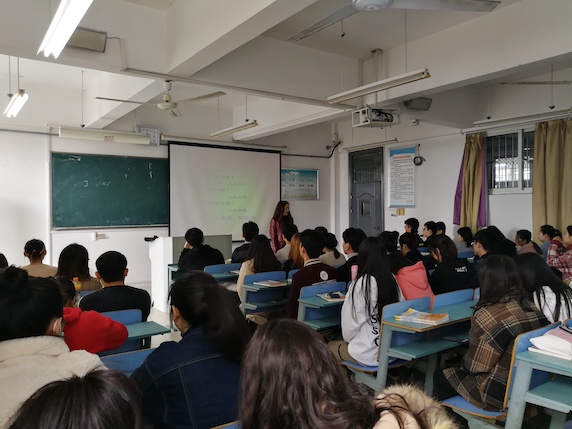 杨晓秋首先用一首唯美的诗歌《青春》,启发学生思考人生目的、人生态度以及人生价值,进而引出本次课堂的主题——青春不是用来挥霍的,而是用来奋斗的。紧接着她结合励志名人的故事以及自己求学的经历,从诚信、善良、知书达理、责任心、智慧、情怀、健康以及爱美之心等八个方面详细阐述了大学生如何进行自我培养、自我管理、自我监督以及自我教育。最后,杨晓秋对全体同学提出殷切希望,希望大家能够在大学中进一步认知自我,确定人生发展目标,并为之不懈奋斗。