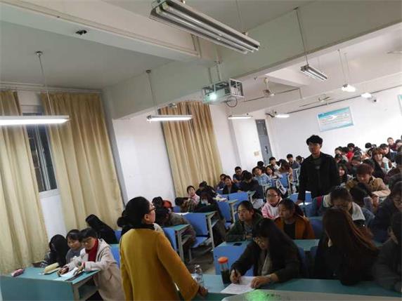 11月27日中午,文学与教育学院副教授、蚌埠市作家协会理事洪何苗老师在B309教室为蚌埠学院师生举办了一场创意写作研究的讲座。讲座由秘书学教研室李艳洁老师主持,文学与教育学院师生及多个文学社团学生一百余人到场聆听。