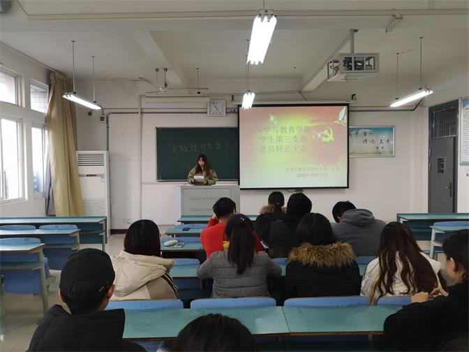 为进一步抓好党建工作,高质量完成学生党员发展工作,12月17日,文学与教育学院学生第一、二、三党支部于教学楼召开预备党员转正大会。会议认真讨论并审议了李琪等11名同志的转正申请。出席本次大会的有各学生党支部书记、支部委员和在校的学生党员。