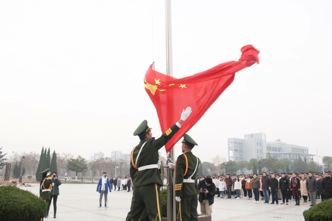 为进一步加强大学生爱国主义教育,培养大学生的爱国主义精神,由校党委宣传部和经济与管理学院共同选拔、组建的国旗班近日正式成立。12月24日星期一清晨,国旗班在图书馆广场隆重举行升旗仪式。校党委书记刘泽功、党政办主任史毓新、团委书记张斌、经济与管理学院党总支书记杨晓秋以及团委副书记王大明出席本次活动,经济与管理学院教师代表、18级全体学生以及校学生会和校青协全体成员参加此次活动。
