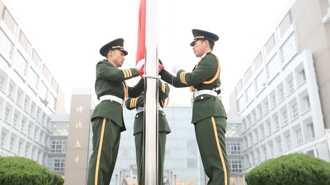 早上七点整,在师生庄重肃穆的注视下,刘泽功将国旗授予国旗班,并宣布升旗仪式开始。随后,国旗班全体成员迈着坚定而有力的步伐,以饱满的热情,庄严地护送五星红旗进场。伴随着雄壮的《义勇军进行曲》,鲜艳的五星红旗冉冉升起,迎风飘扬。现场全体师生行注目礼,向国旗表达崇高的敬意。