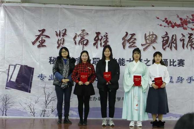 经过初赛的选拔,本场比赛共有19组参赛选手。这些选手在舞台上声情并茂,慷慨激昂的表现深深打动了评委和现场听众,现场的掌声此起彼伏,不绝于耳。朗诵内容也是丰富多彩,有千古传颂的名篇,有对祖国的赞颂,有对故乡的眷恋……比赛期间还穿插了歌唱与吉他配乐的表演,使现场气氛更加活跃。最后,根据在场评委的公平公正的评分,共评出一等奖四名,二等奖六名,三等奖九名,并由评委老师为获奖选手颁奖。