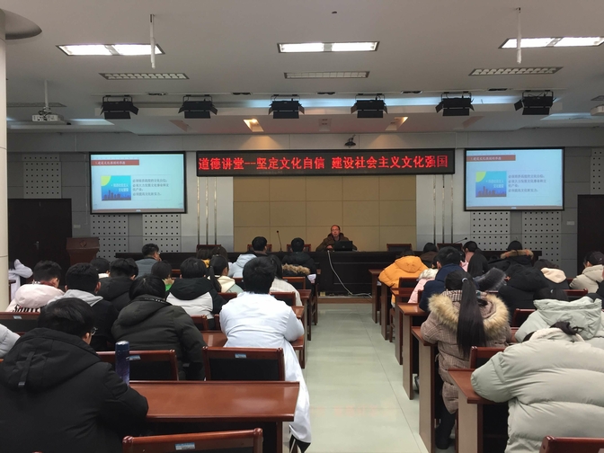 为进一步培育和践行社会主义核心价值观,不断提升我校师生思想道德素质,12月29号,以“坚定文化自信,建设社会主义文化强国”为主题的道德讲堂在行政楼视频会议室开讲。马克思主义学院院长邬旭东教授主讲,师生共计一百余人聆听了本次讲座。本次道德讲堂由校团委组织。