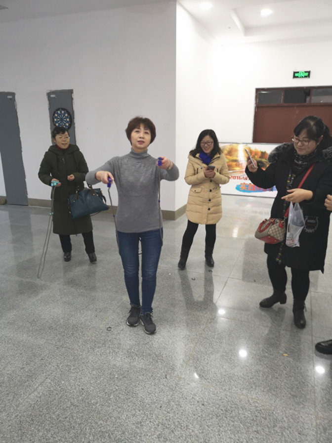 迎新年活动内容丰富,形式多样,有“教师合唱”、“40秒跳绳”以及“投飞镖大赛”等,活动现场气氛热烈,高潮迭起,欢乐的笑声此起彼伏。大家暂时抛开了工作、生活上的烦恼与压力,尽情投入到活动当中,欢声笑语响遍了整个大厅。赛后,全体教职工合影留念。