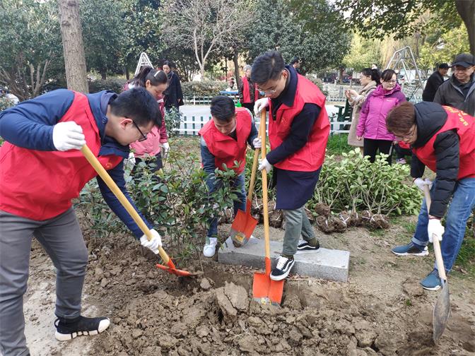党员们准时到达了活动地点上铁世纪家园小区。胜利社区的启动仪式于早上九点准时开始,仪式上社区负责人发表讲话,号召青年朋友们争做雷锋精神的传承者、志愿服务活动的践行者,团聚青春力量,争当双创先锋,用实际行动引领社会风尚。启动仪式结束后,党员们进行了义务除草、义务植树、义务清理垃圾等多项义务活动。郑成明同志作为老党员带领预备党员一起积极劳动,以身作则,拿起铁锹率先进行除草植树活动,起到了良好的先锋模范作用,同时为支部积蓄后备力量,促进支部更好更快的发展。支部男同志卖力种树,女同志则拿起水桶为新树浇水、清除树周围的杂草,在义务劳动的同时,支部党员互帮互助体现了良好的团结协作能力,提高了支部凝聚力。