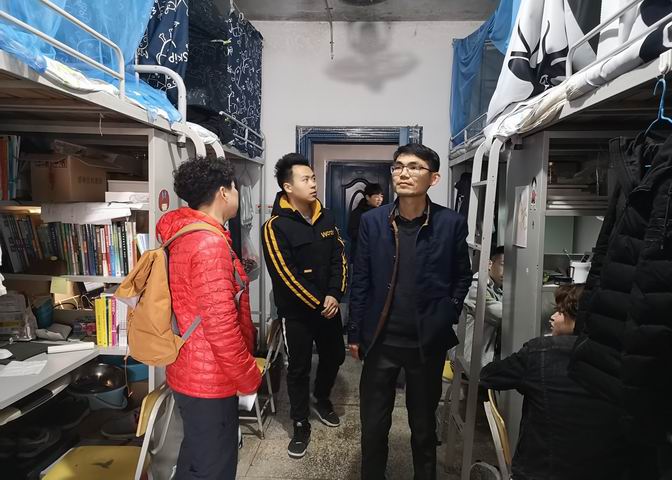此次检查的重点内容是了解学生日常生活和学习情况、宿舍水电安全问题、桌椅稳固情况、宿舍卫生等。期间,袁飞对各宿舍情况进行深入了解,询问同学们的生活学习情况,并嘱咐大家严格遵守校规校纪,按时休息,养成良好的作息习惯,营造安全、温馨、文明、和谐的宿舍环境。对检查中存在的问题及安全隐患,各辅导员一一如实记录,同时要求同学们加强安全意识,做到有问题及时上报,切实维护自身安全。