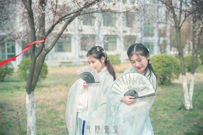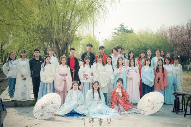 2019年3月23日下午校园人工湖旁,杨柳相依,落英缤纷。青年男女们着汉家之裳游玩踏青,一场特殊的春日宴会悄然进行。文学与教育学院团总支女生节系列活动之秋彤汉服社花朝节踏春顺利进行。