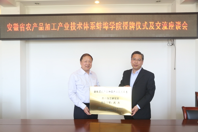 省农产品加工产业技术体系为我校岗位专家授牌,并与蚌埠学院签订了任务书。随后,双方就进一步合作进行了交流座谈。