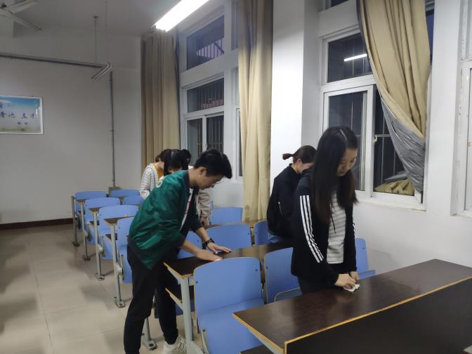 在活动中,大家积极热情,认真负责,充分展现出了新时代大学生所具有的高度社会责任感与为社会服务的奉献精神。第一学生党支部的发展对象在放学后打扫教室、擦拭黑板、整理桌椅,将无人教室中的电灯关闭;第二学生党支部组织发展对象对校园内的自行车进行摆放整理,将乱放的自行车整理至自行车停放区;第三学生党支部对文教学院卫生责任区中的垃圾进行打扫清理,将责任区内的白色垃圾、烟头、纸屑等分类投入垃圾箱中。大家看到辛勤劳动后焕然一新的教室、有序整洁的校园环境,感受到劳动与奉献的快乐。