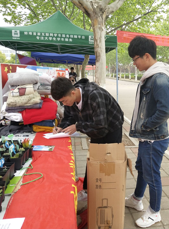 “赠人玫瑰,手留余香。”随着生活水平的提高,大学生成长阶段的过渡,他们的衣物更迭频率也随着增大。为了弘扬乐于奉献、勤俭节约的优良传统,践行节约低碳理念,唤起广大青年学生的社会责任感。2019年4月20日,蚌埠学院艺术设计学院青年志愿者协会面向全校师生,本着“捐物助人”的公益精神,倡导“捐物助人、物旧情深、有限物资、无限循环”的理念于主干道图书馆门前开展了捐衣活动,得到了师生们的广泛支持。