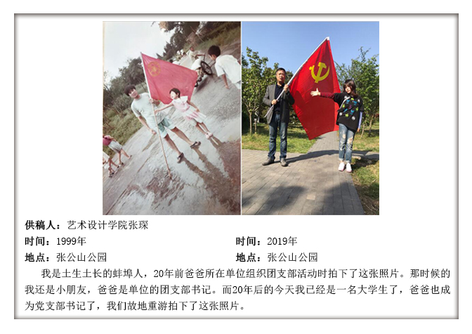 今年是新中国成立70周年、五四运动100周年。为回顾奋发向上、积极拼搏的青春岁月,展现“青春心向党·建功新时代”的青春风貌,凝聚建设中国特色社会主义国家的青春智慧和力量,艺术设计学院团总支开展了“时空·记忆——致青春”照片征集活动。此次照片征集活动,面向全校师生征集相同环境不同时代的新老两张对比照片,通过对比反映时代变迁。主题希望围绕亲情、友情、爱情、青春、奋斗等主题选材拍摄,内容传递正能量,体现积极向上的精神风貌,彰显建设中国的青春风采。