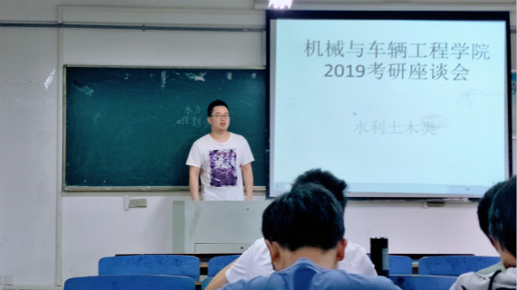 2019年5月20日晚,机械与车辆工程学院在A217教室举行了水利水电、土木工程专业考研经验座谈会。学院团总支书记周道鸿老师、3名成功考研生以及40名有考研计划的学生参加了本次考研经验交流会。