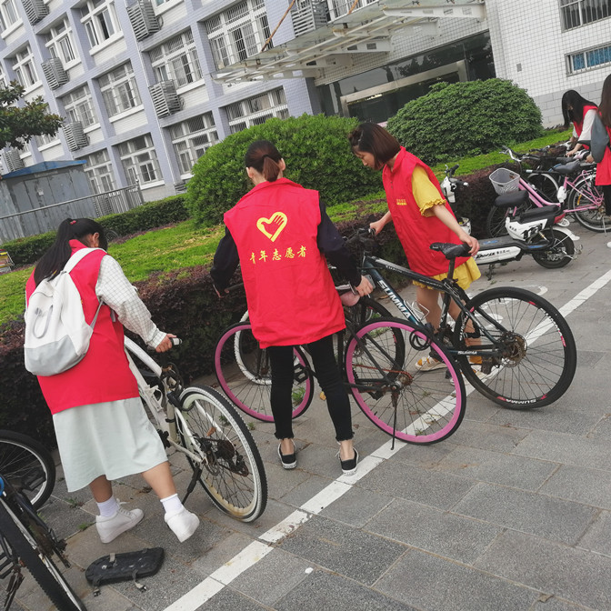 开展资助感恩志愿活动。5月25日,外国语学院青年志愿者协会于校园内开展了“营造绿色校园”志愿服务活动。志愿者们对教学楼进行了清扫,在每层楼的楼道,每间教室,清理了同学们上课时遗留在边边角角的垃圾,以及各种死角位置;此外,同学们还重新摆放了各宿舍楼和教学楼前的自行车,避免其占用其他车道,为大家的出行带来不便。