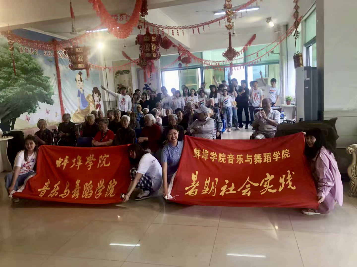 6月1日上午,音乐与舞蹈学院团总支组织18级音乐学1班团支部30余名志愿者来到蚌埠市第八人民医院老年康复中心,进行一场温馨的节目表演,志愿者们展现了大学生的青春活力和才华,也给老人们带去了欢笑和快乐。