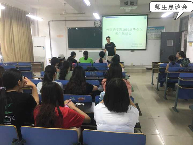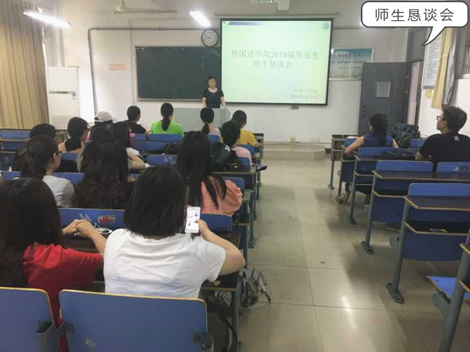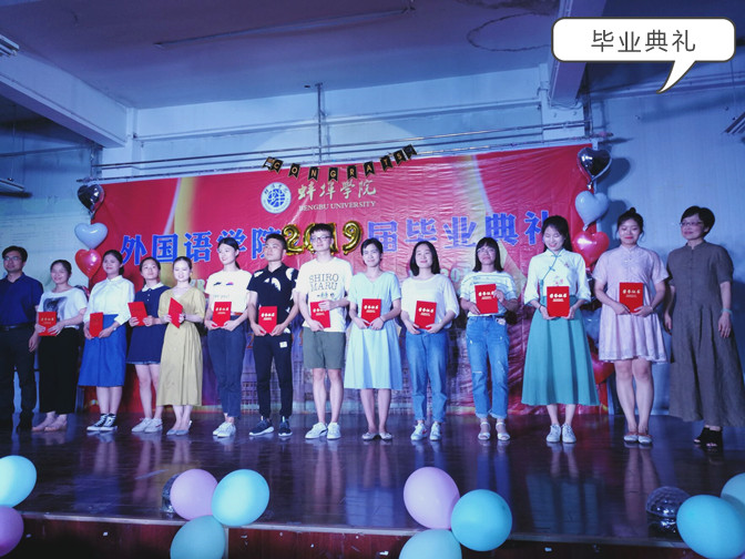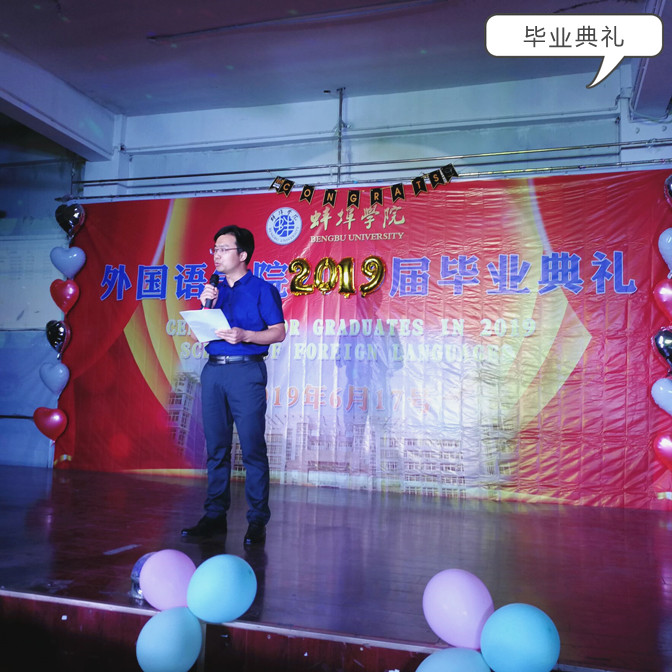 依依惜别毕业典礼:依依惜别,期待早日相聚,外国语学院团总支筹划了2019届毕业生毕业典礼,为师生提供了一个话别的平台,外国语学院党总支书记赵睿、副院长赵生学、团总支负责人王秀梅到现场与同学们面对面,赵生学说:在校几年积累的学识与阅历,都会成为你们一路前行所需的干粮,为你们提供身体与精神所需的能量。你们在这里采撷的丰盈的智慧和灵动的思想,都将会为你们在学业、执业、创业等方面激发出无限的可能性和超越性。