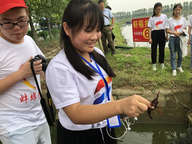 当实践团队一行来到沱湖乡大岗村,在稻虾养殖基地,站在水田边,看着农户翻转着虾笼,在与农户的沟通中,实践团队了解了“稻虾共田”的养殖模式,即通过对水稻田进行改造、合理饲养一定数目的龙虾从而实现一田双业、一季多收的目的,不仅能够带来可观的经济收益,更是顺应,减少了饲料及农药等化学物质的使用,真正实现了生态养殖。同学们说,在这里他们感受到了“生态养殖”的意义,又看到了不一样的美丽乡村。